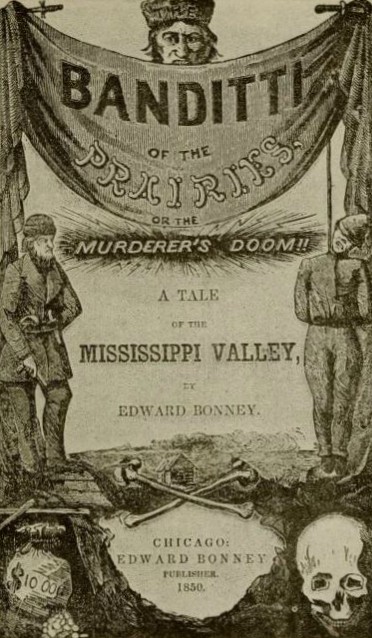 In 1850, Edward Bonney published The Banditti of the Prairies or, the Murderer’s Doom! A Tale of the Mississippi. The book details his pursuit of Colonel Davenport’s killers and ran through six editions before 1858. The book is remarkably accurate when compared with contemporaneous records. Bonney died in Chicago on 4 February 1864, aged 56.