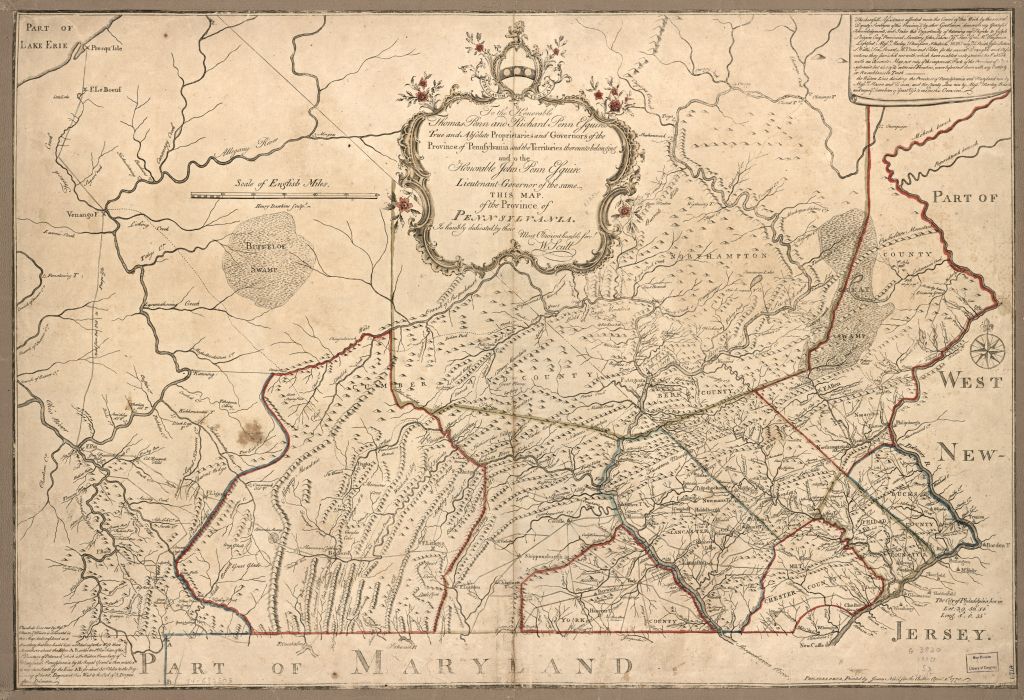 1770 map of the Province of Pennsylvania showing Great Cove and Little Cove at the map’s lower edge, just to the left of center.Public domain Wikimedia.